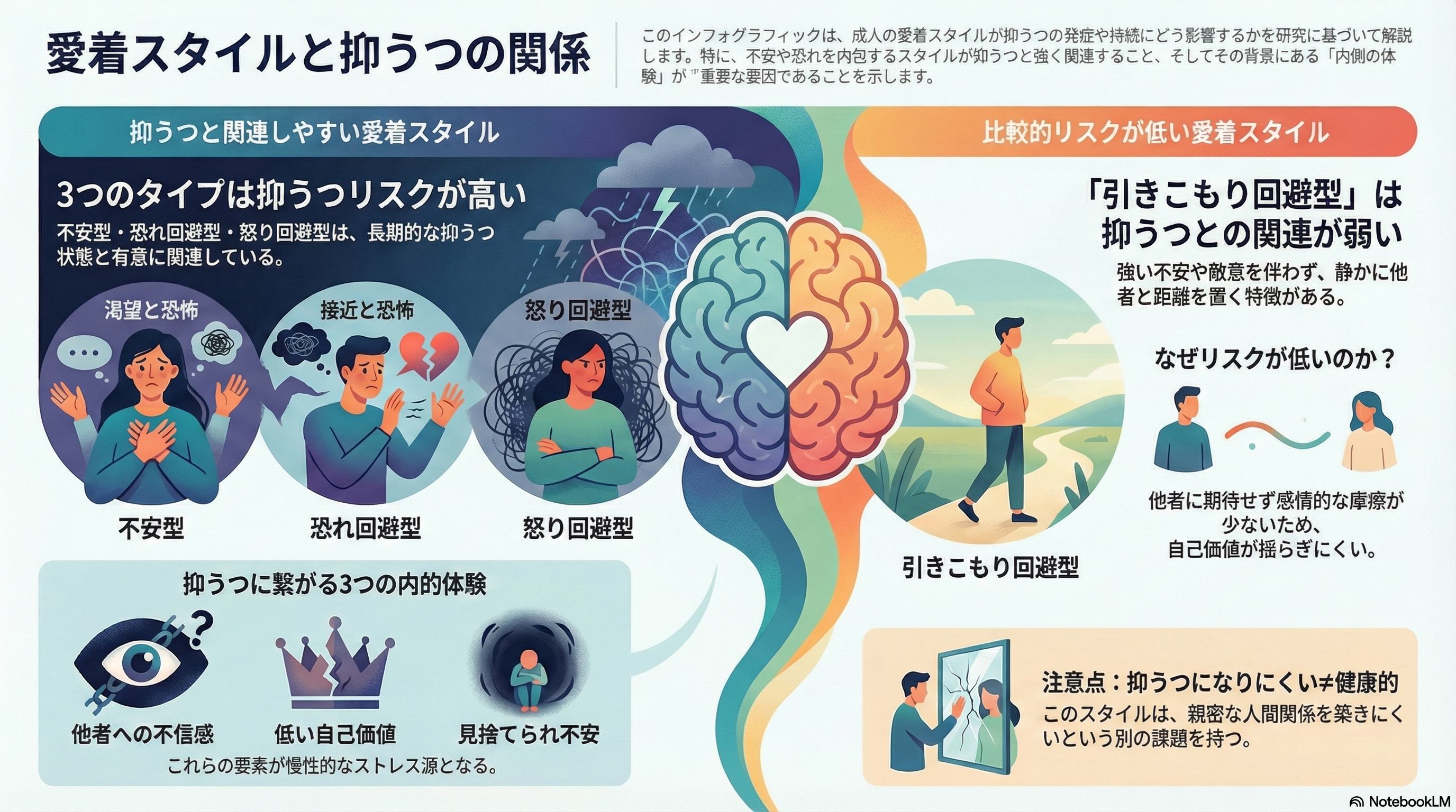 臨床的な意味での抑うつとの関連は最も低いのが安定型の特徴です。