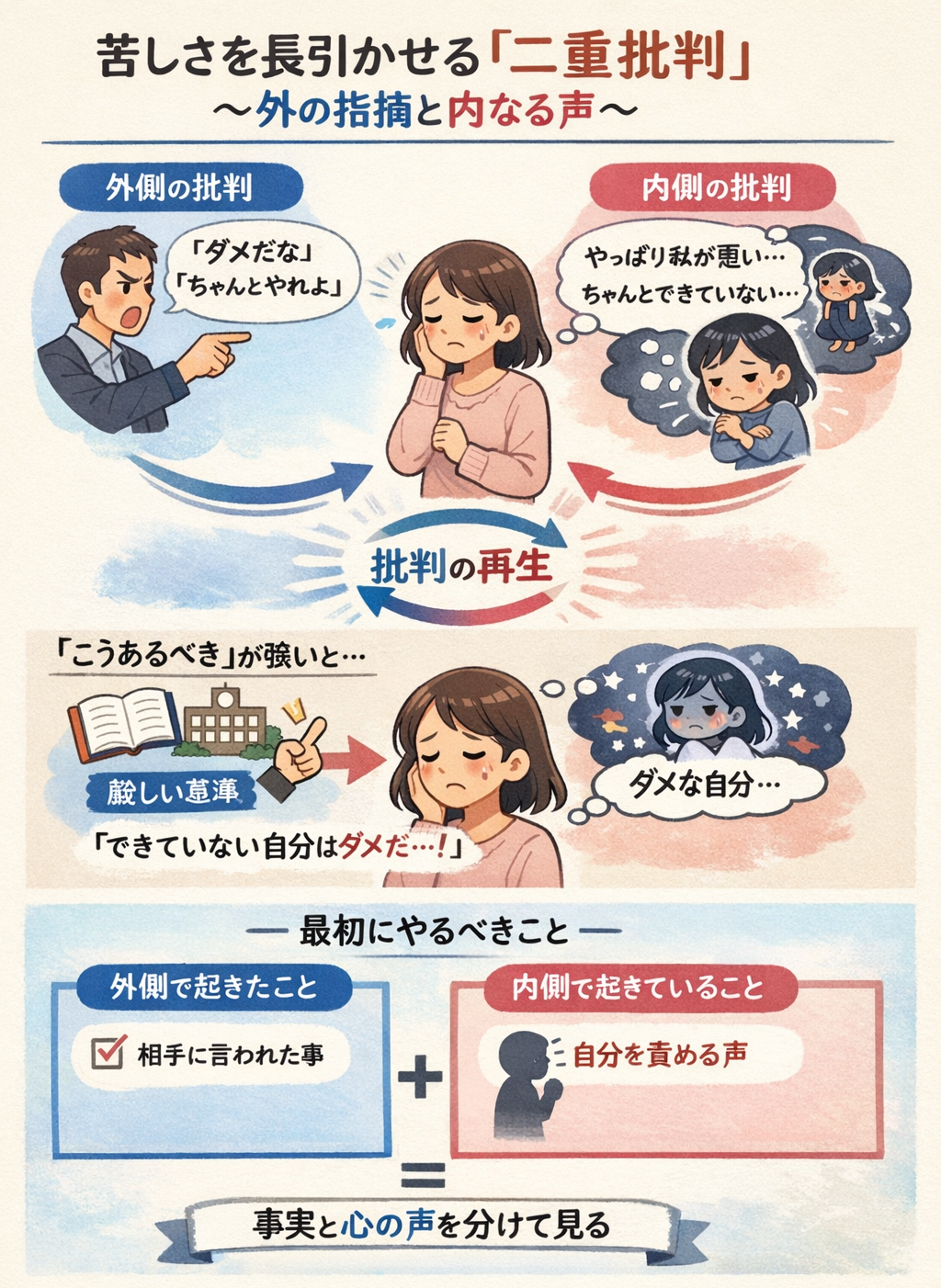 1.苦しさを長引かせる「二重批判」~外の指摘と内なる声~