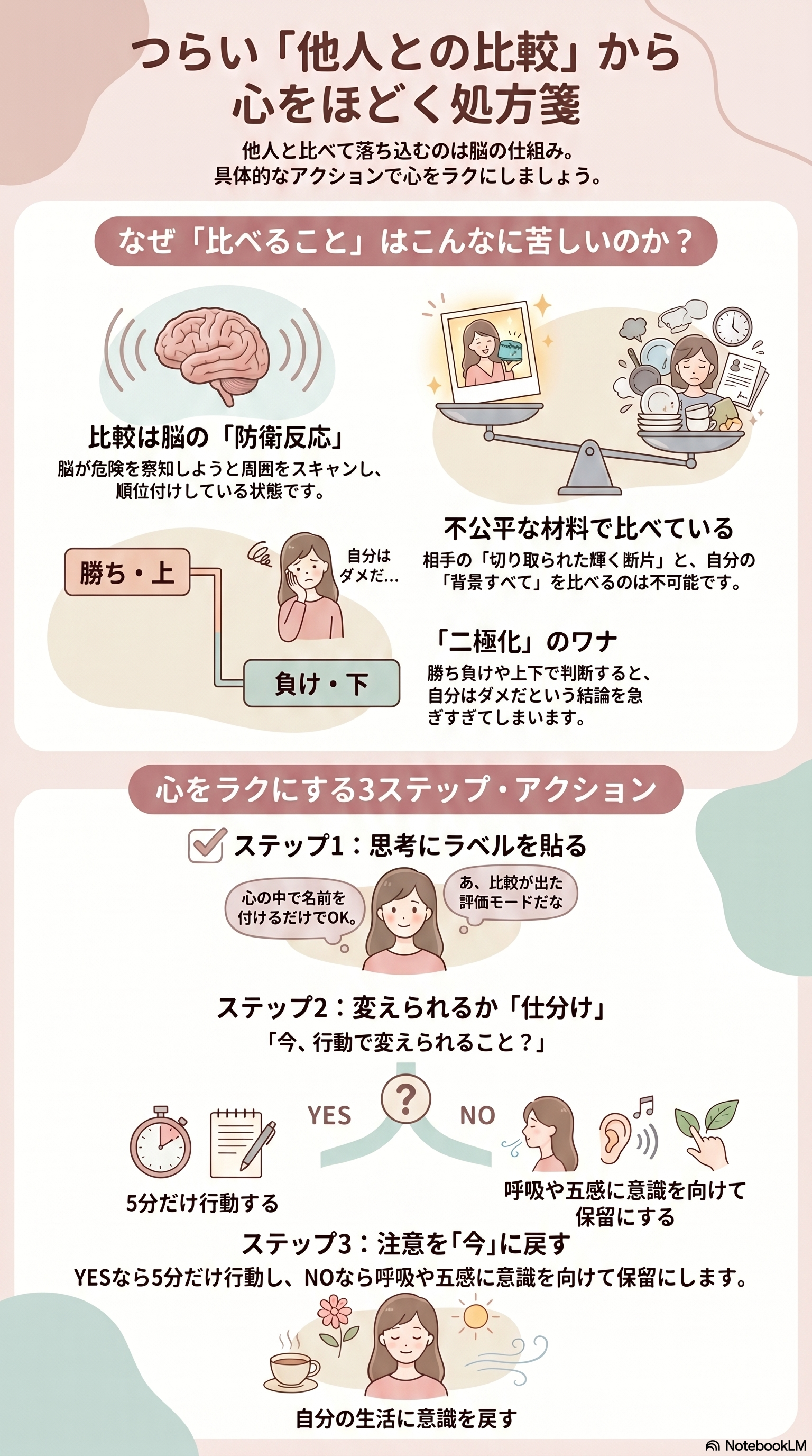 大切なのは、比較が出た瞬間に「考え」ではなく「手順」で処理して、生活に戻ることです。